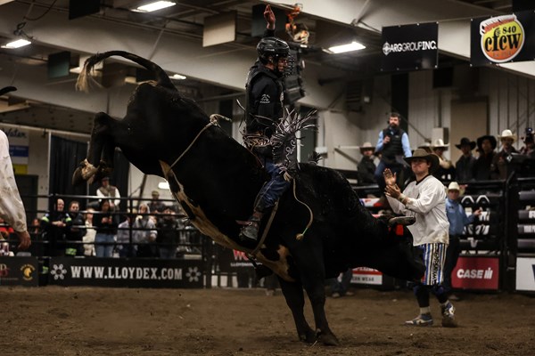 LLOYDMINSTER, Sask. – As the 2025 PBR (Professional Bull Riders) Canada season got underway Saturday night in Lloydminster, Saskatchewan, Tyler Craig (Crossfield, Alberta) went a perfect 2-for-2 to win the Touring Pro Division’s PBR Winter Classic, and vault to the early No. 1 rank in the race for the PBR Canada Championship and accompanying $100,0000 bonus.