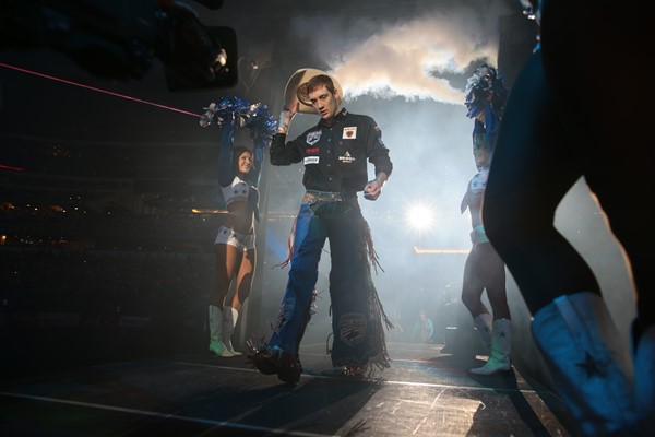 Tanner Byrne in the opening during the Iron Cowboy Built Ford Tough series PBR. Photo by Andy Watson