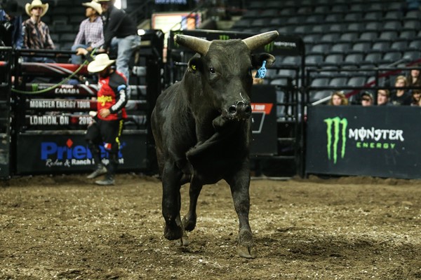 BULL PEN – With reigning PBR Canada Bull of the Year Happy Camper staying home for the eastern swing of this season’s Monster Energy Tour, Ripped at the Seams, One for the Money and Twist of Barbwire have the chance to tie him for most bull of the event honors thus far in 2019. Happy Camper leads PBR Canada with two event titles, recording his high scores in back-to-back events in Lethbridge and Calgary. Of Vold Rodeo, Ripped at the Seams earned his top marks at the season-launch event in Winnipeg, marked 43.5 points for his 1.77 seconds buckoff of Cody Casper. Slated to buck in the championship round, the bull who calls Ponoka, Alberta home has delivered matching 43-point outs in his two trips while in the Eastern portion of Canada. First bucking off Keyshawn Whitehorse in Quebec, Ripped at the Seams most recently sent Adam Hinkley to the dirt shy of the 8-second whistle in London. Also from the Vold Rodeo outfit, One for the Money was the top bull in Quebec, marked 44 points when Derek Kolbaba successfully rode him for an 88-point score to be crowned the 2019 Canadian Iron Cowboy. In his most recent trip, One for the Money was marked 43.5 points for his 5.57-second trip with Carlos Garcia. The trio of bulls is completed by the most recent bovine athlete to record an event’s top score, Twist of Barbwire from Thompson Rodeo Livestock. His high marks, 43.5 points, were earned in London for his quick 3.64-second trip with Luis Blanco.