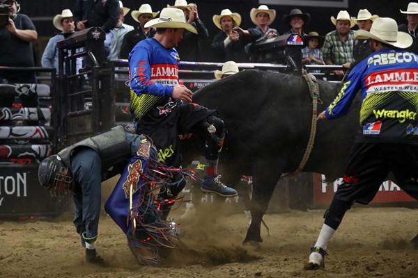 This is one that Chad has matched up before, it’s gone Chad’s way before. This bull is going to be out one, or two, around to the left, into Chad’s hand. Really fits his style. One that the guys also like to get on. And when Chad’s got one that he knows that he can stay on, look for him to do exactly that. This bull is a great bull, could be that 87-point range to set Chad up at the top of the leaderboard to come back in the championship round in really good shape to try and win his first event of the season.