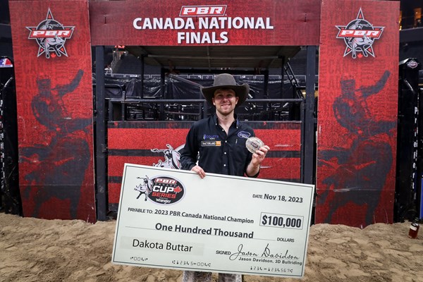 EDMONTON, Alta. – When the dust settled Saturday night inside Rogers Place, Dakota Buttar (Eatonia, Saskatchewan) cemented his name in history, completing a come-from-behind surge to be crowned the 2023 PBR (Professional Bull Riders) Canada Champion, becoming just the fourth rider in history to win the title in multiple seasons.
