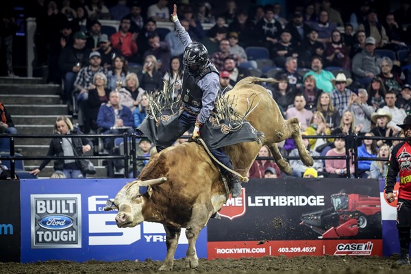 LETHBRIDGE, Alberta – In front of a raucous crowd inside the ENMAX Centre in Lethbridge, Alberta, Nick Tetz (Calgary, Alberta) and Dalton Rudman (Wellington, Utah) surged to an early lead at second PBR (Professional Bull Riders) Canada Monster Energy Tour event of the 2020 season, splitting the Round 1 win at the South Country Co-op Showdown.