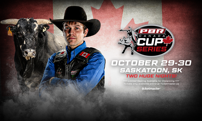 The bull riding action for PBR Canada Cup Series’ Saskatoon Classic begins at 7:00 p.m. CST on Friday, October 29 and Saturday, October 30.