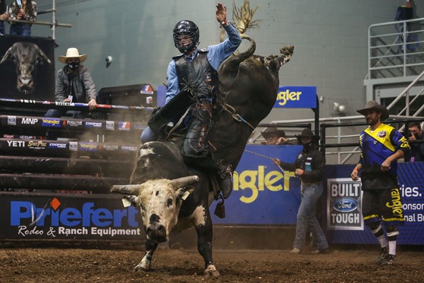 Matched with Boo (X6 Ranch Bucking Cattle/Legend Rodeo Stock), the 21-year-old reached the requisite 8 for a victory-clinching 82.5 points.