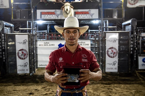 ELNORA, Alta. – As an electric Saturday night crowd watched on, Gilmar Santana (Ouro Preto, Brazil) showed up and showed out, delivering the high-marked ride of the PBR (Professional Bull Riders) Canada Touring Pro Division event in Elnora, Alberta, to win the 25th Elnora Brahma Rama.